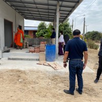 หลวงพ่อทองสด วัดเนินพะยอม นางนิกูล ทองหน้าศาล ผู้อำนวยการโรงเรียนหนองโสนพิทยาคม และคณะครูจากโรงเรียนหนองโสนพิทยาคม ให้การต้อนรับ