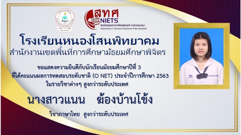 นักเรียน ม.3 ที่มีผลสอบโอเน็ตสูงกว่าระดับประเทศ